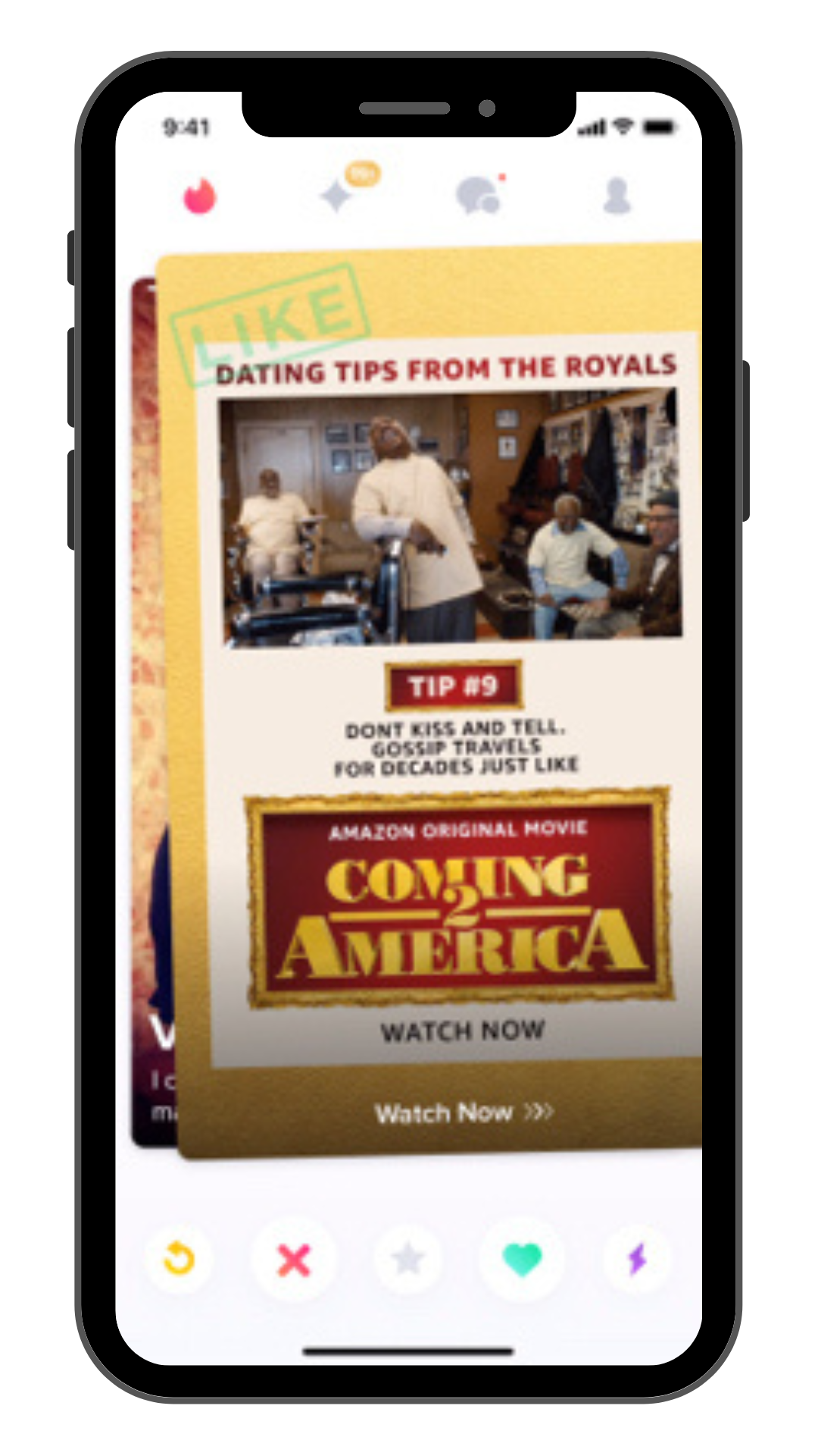 Tinder and BLK provided users with helpful dating advice from Prince Akeem as they were swiping to find the right partner. Users were then able to share their opinions by swiping left or right.